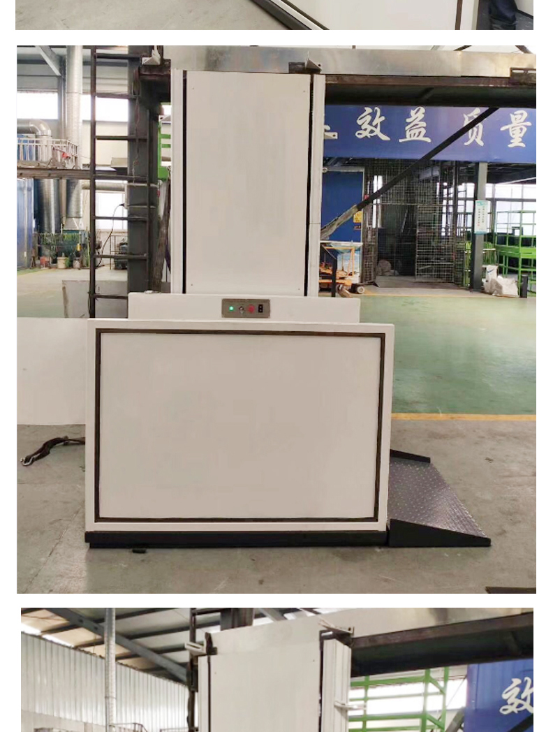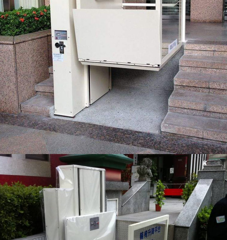 無障礙升降機:是為殘疾人專門設計制造的升降機。為方便殘疾人出行及觀光,在社區(qū),醫(yī)院,學校,賓館,酒店,公共場所等地方。旅游觀光梯通道的自動扶梯旁,安裝了無障礙升降機。無障礙升降機可容納輪椅車出入,殘疾人或行動不便者只需按一下兩端的求助按鈕,值班人員就會立刻開啟自動升降機.